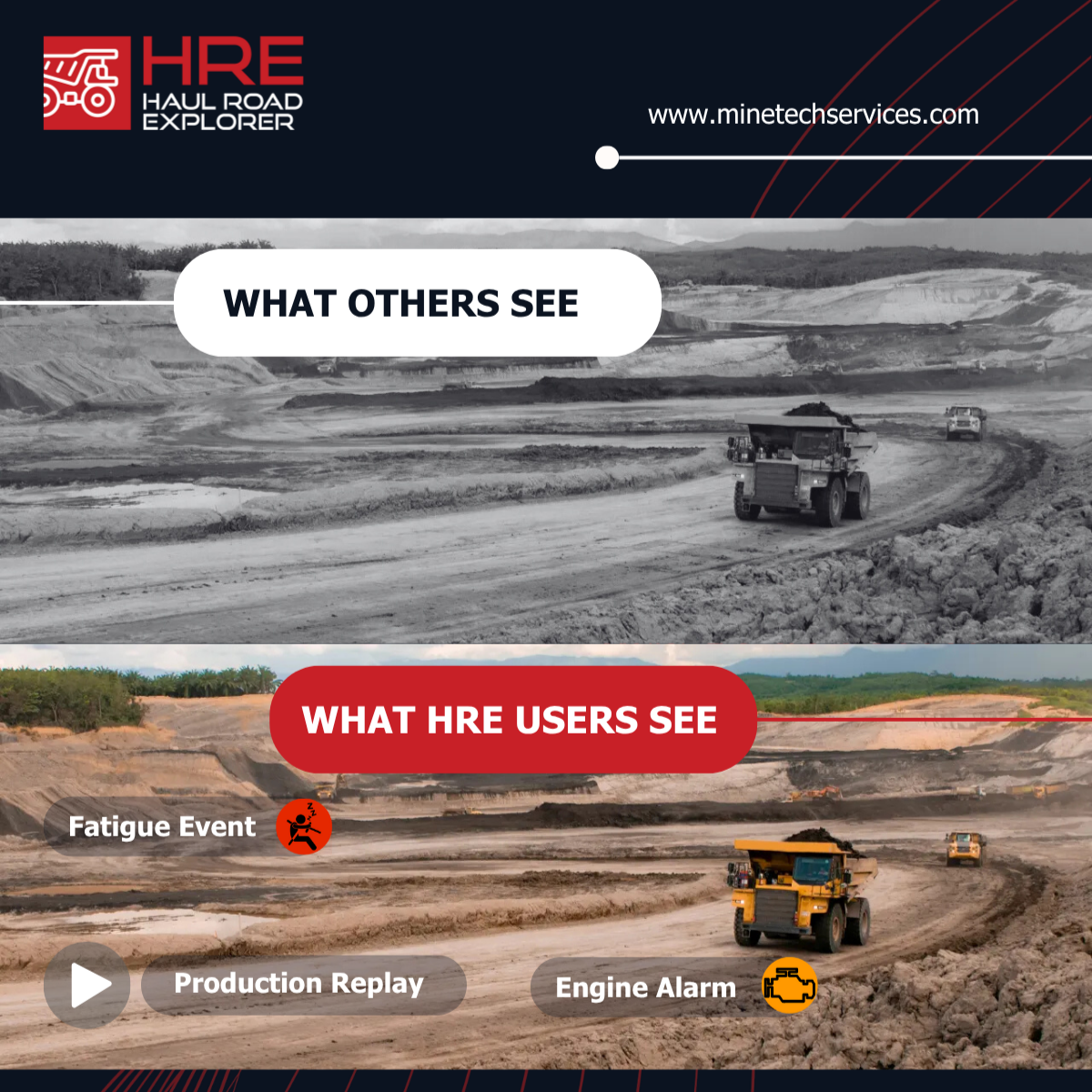 🙅♂️ Stop managing your haul roads in the dark. We get it. Miles of haul roads, tons of data, and endless challenges vying for your attention. HRE gives you x-ray vision for your mine site, allowing you to: • 𝗖𝘂𝘁 𝘁𝗵𝗿𝗼𝘂𝗴𝗵 the data overload.• 𝗜𝗱𝗲𝗻𝘁𝗶𝗳𝘆 hidden bottlenecks.• 𝗣𝗿𝗶𝗼𝗿𝗶𝘁𝗶𝘀𝗲 critical maintenance needs.• 𝗣𝗿𝗲𝘃𝗲𝗻𝘁 costly breakdowns and …