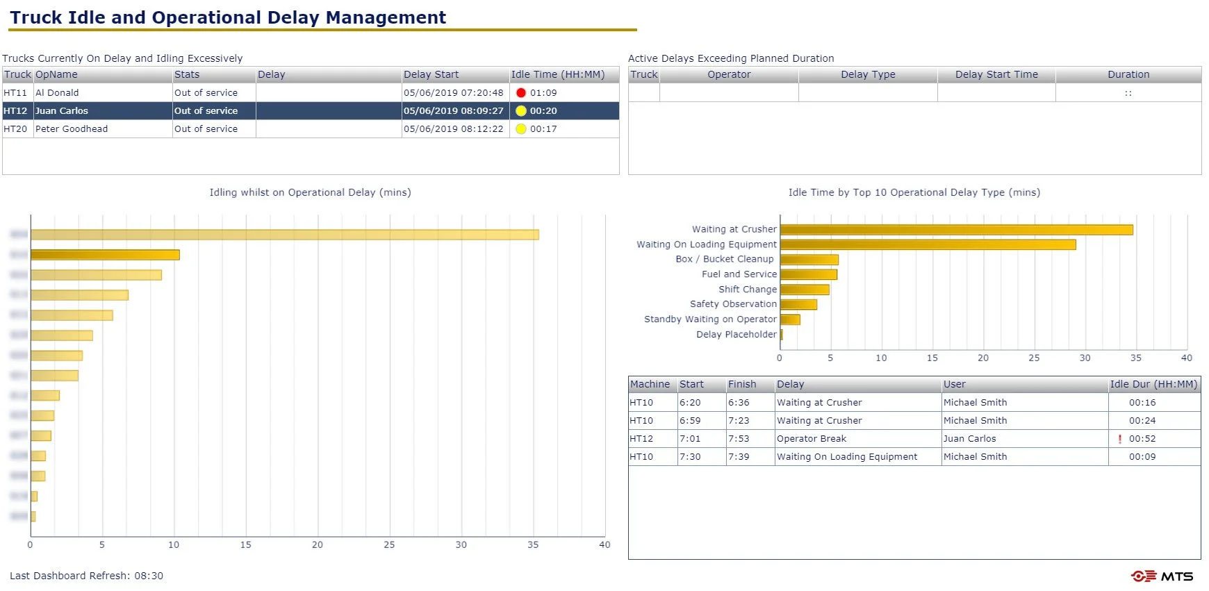 Truck idle time and operational delay management dashboard for mining operations developed by MTS