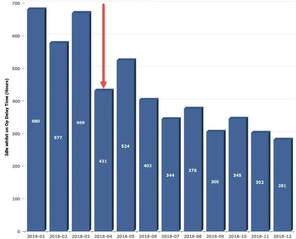 Following Mine Tech Services’ deployment of the solutions, as well as mentoring with the team members, there were significant reductions in idle time particularly during delays. Within 3 months of the solution deployment, the idling on delay was reduced by 50% and maintained at this level.
